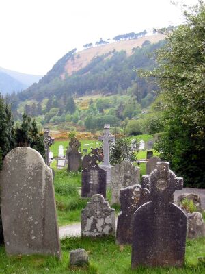 This was Glendalough - another great spot to be in. By that time we had seen quite a lot of castles, cathedrales, abbeys and graveyards, but this one was very interesting to see. It was nice to walk around all these historic places and to be able to explore them. I especially liked the graveyards and reading the tombstones. The are so full of history and each one tells a story of a family that has lived there... |